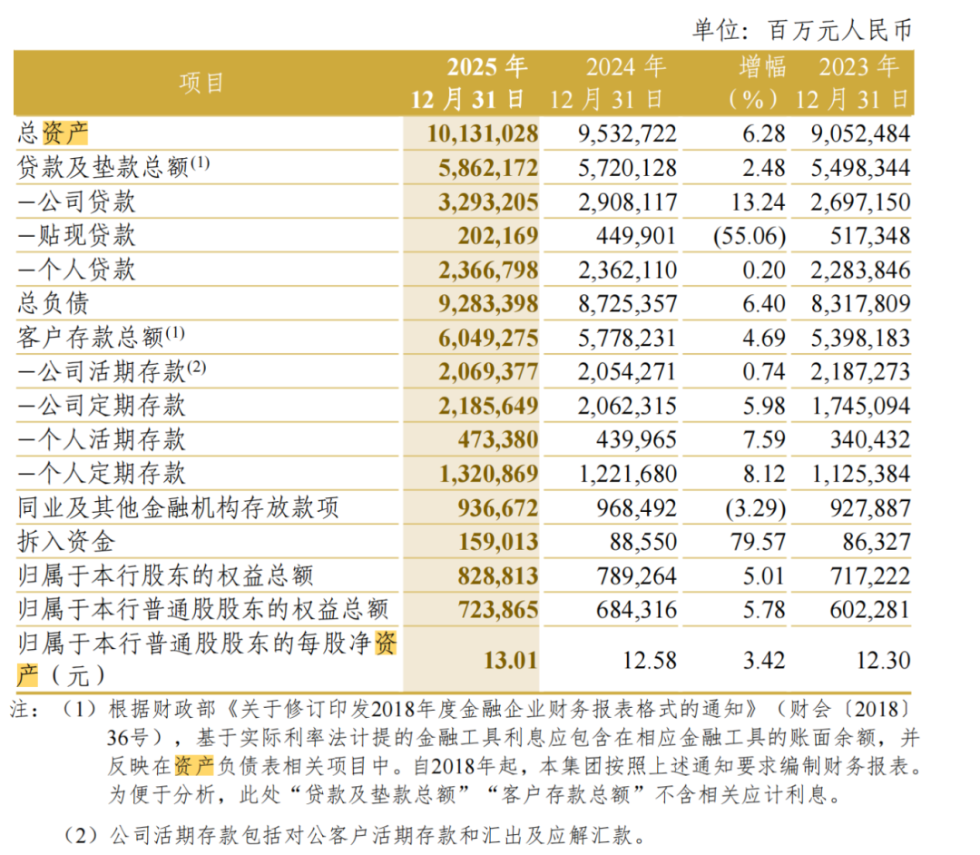 中信银行2025年报最引人注目的莫过于资产总额历史性突破10万亿元大关,达到101,310.28亿元,同比增长6.28%。这标志着其跻身股份制银行“头部俱乐部”行列。